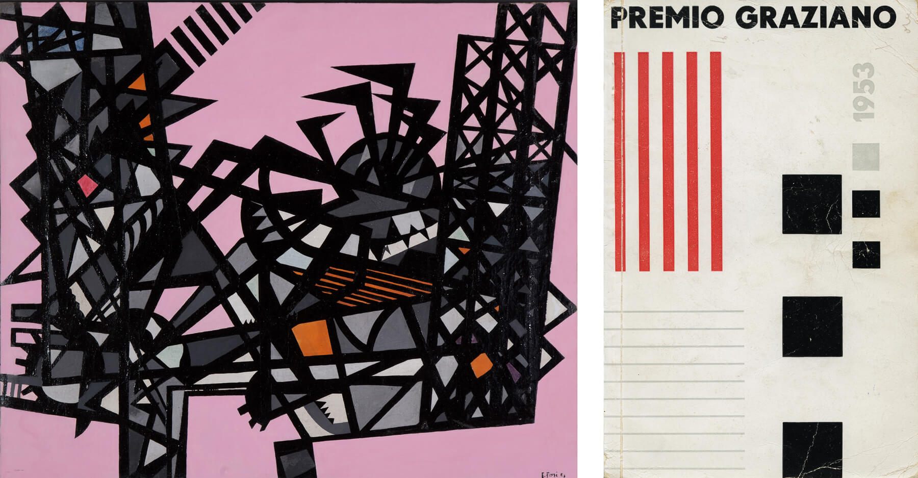 Con Giuseppe Capogrossi, Venezia, Galleria del Cavallino, Premio di pittura “Menù per La Colomba”, 1953