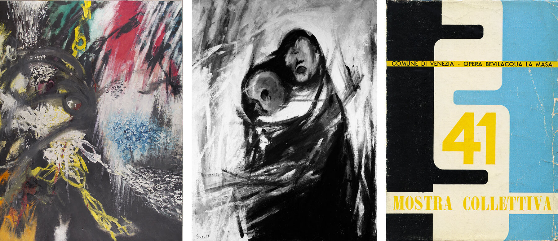 La transizione verso l’astrattismo, convintamente avviata sul finire degli anni ’40, viene per la prima volta pubblicamente registrata nel febbraio del 1951 in una mostra personale (assieme a Boldrin e Gerardi) ospitata alla Bevilacqua La Masa, come “risarcimento” dell’esclusione dal Premio Favretto, avvenuta nel 1949; esclusione alla quale i tre giovani artisti reagirono esponendo per protesta i loro quadri sotto i portici di Piazza San Marco.