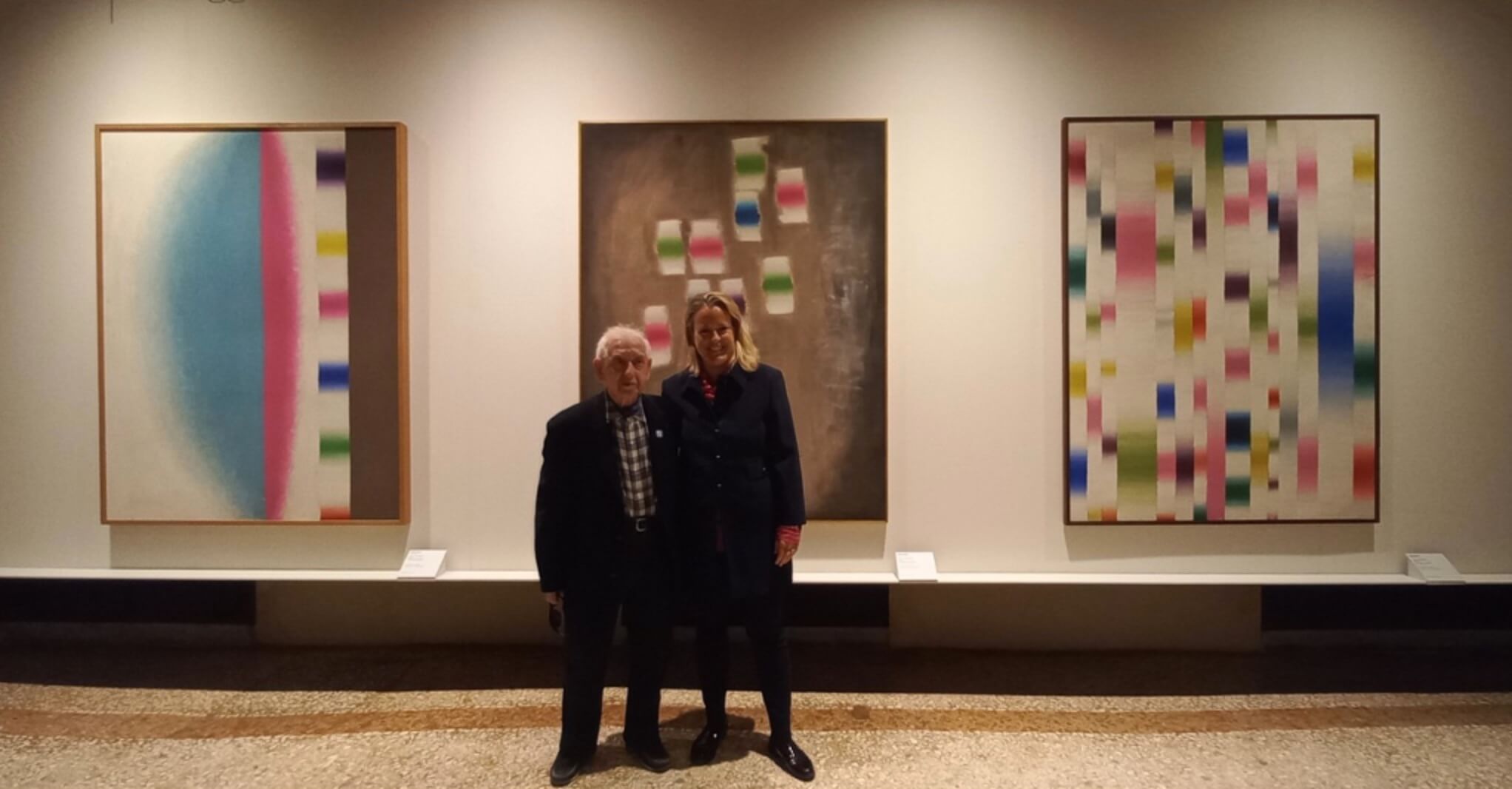 «Omaggio a Ennio Finzi». Toni Toniato con Elisabetta Barisoni, direttrice della Galleria Internazionale d'Arte Moderna Ca' Pesaro.