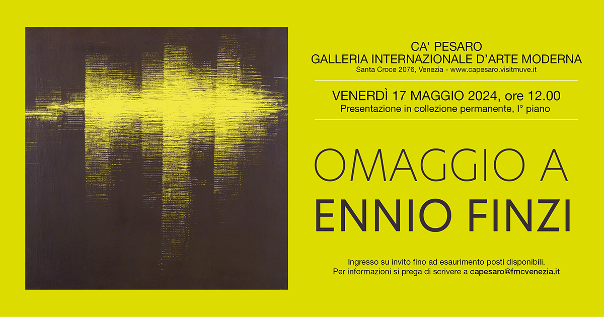 Nel 2024 in concomitanza con la Biennale d’Arte la Galleria Internazionale d’Arte Moderna Ca’ Pesaro di Venezia rende omaggio a Ennio Finzi con una mostra di opere anni cinquanta. L’esposizione, a cura di Elisabetta Barisoni e Michele Beraldo, viene presentata dal critico d’arte Toni Toniato il cui testo appare in un quaderno realizzato per l’occasione.